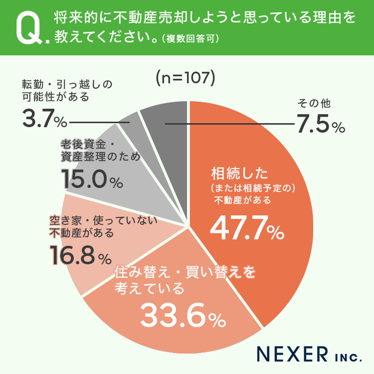 まず、将来的に不動産売却を考えている理由について調査しました。
