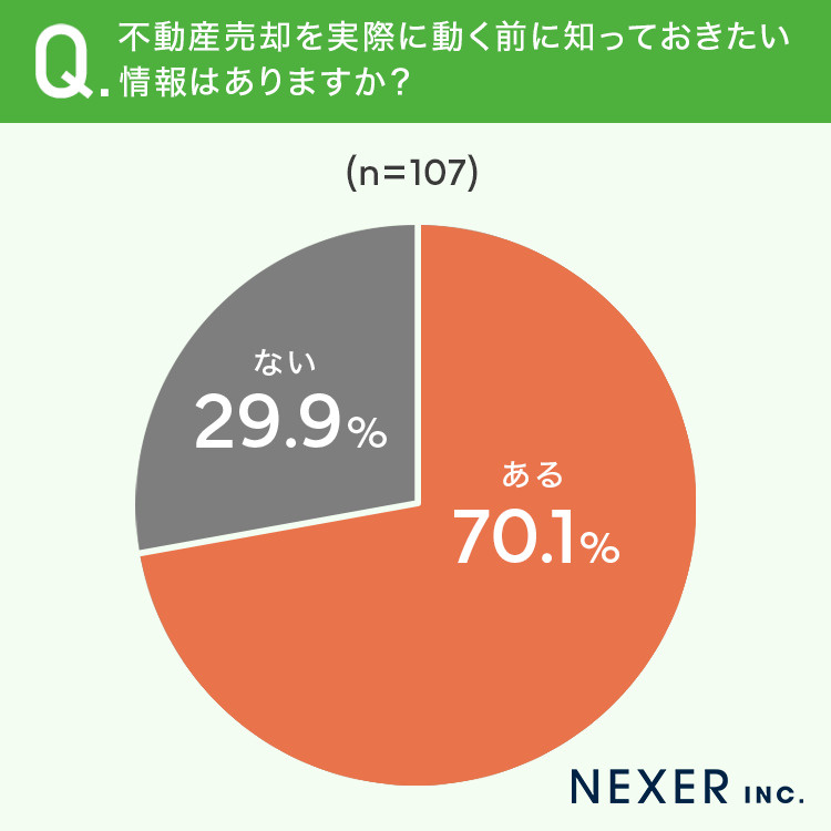 その結果「ある」と回答した方は70.1%にのぼり、多くの人が売却を始める前に事前に情報を集める必要があると感じていることがわかります。